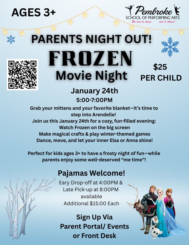 Register HERE: Event: Parents’ Night Out/ FROZEN 1/24/2026 5:00pm