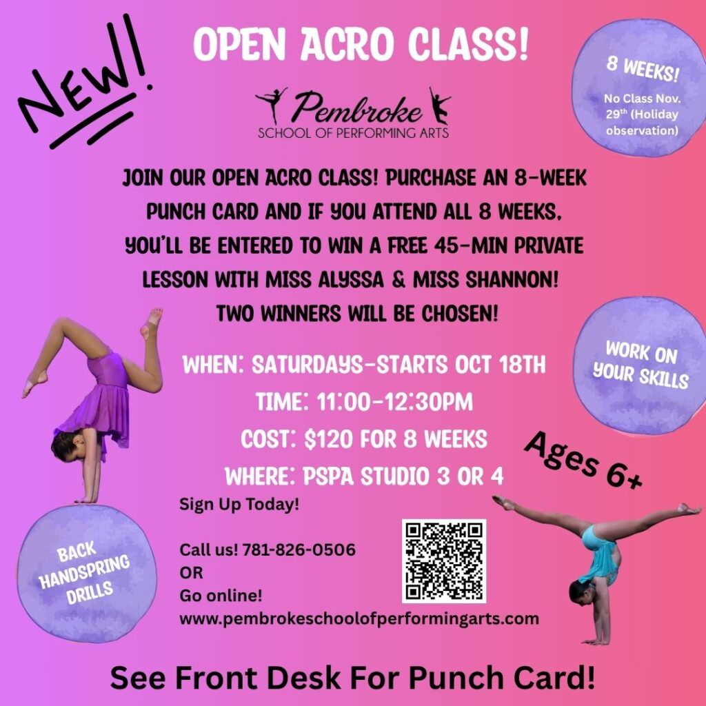 This class is similar to an “open gym” where students can practice and work towards their Acro goals.